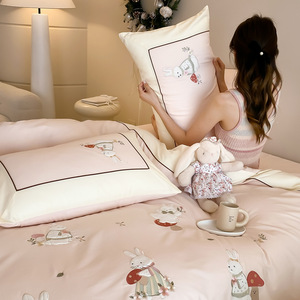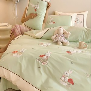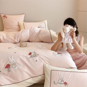 蘑菇&兔兔 秋冬加密新疆长绒棉陶瓷磨毛四件套亲肤精密贴布绣被套