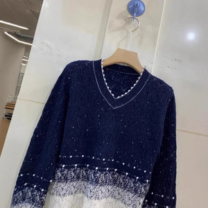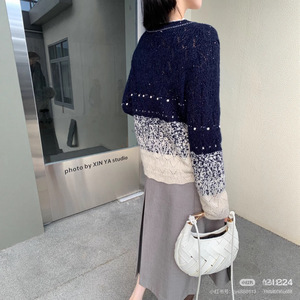 2025早秋新款满天星时尚V领渐变色羊毛针织衫温柔女人味百搭上衣