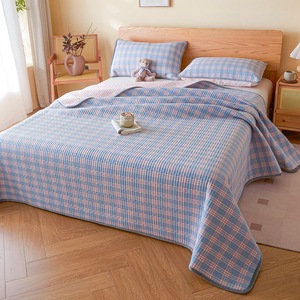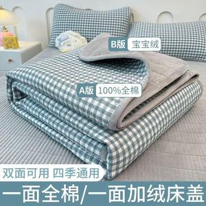 一面全棉一面绒床盖单件四季通用卡通牛奶绒床垫正反两用夹棉床单