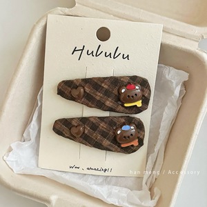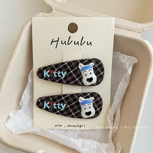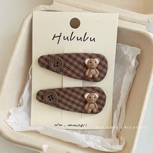 纽扣小熊格子发夹-单个