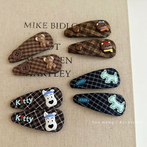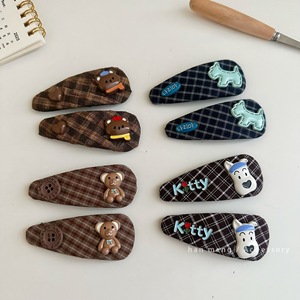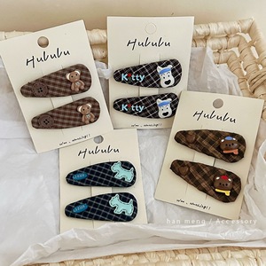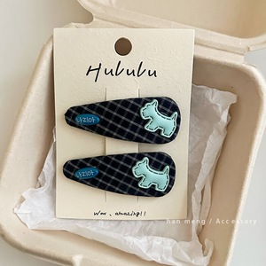 韩国复古格纹小狗布艺发夹BB侧边夹刘海夹碎发新款甜美发卡百搭风