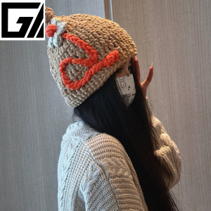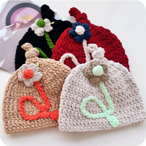 秋冬花朵针织毛线帽日系可爱护耳针织帽保暖舒适防寒护耳帽显脸小