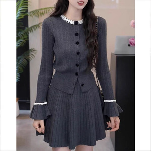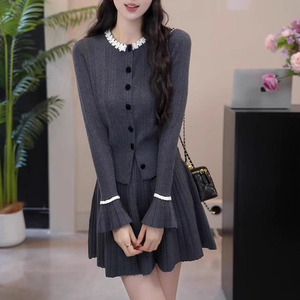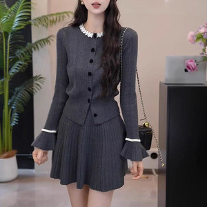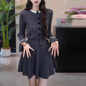 法式【晚春晓景】显瘦针织开衫半身裙两件套女士2025秋季新款套装