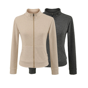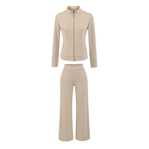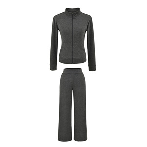 灰色条纹立领修身外套女收腰卫衣开衫阔腿裤韩短上衣初秋运动套装
