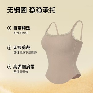2025新款纯欲ins风保暖吊带背心内搭带胸垫打底无痕上衣双面磨毛