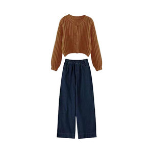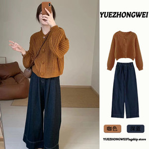 秋装搭配一整套时尚小香风毛衣开衫阔腿裤两件套装初秋季新款女装