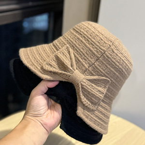 法式秋冬气质纯色针织渔夫帽女千金风百搭盆帽显脸小遮脸水桶帽子