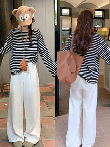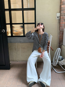 曾小咸 白色高腰阔脚牛仔裤女秋季宽松显瘦直筒裤长裤子2025新款