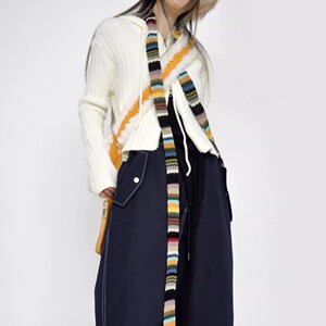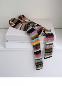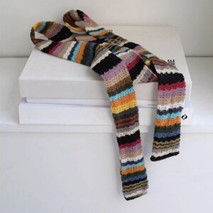彩虹编织撞色条纹长款针织围巾女秋冬保暖文艺复古风
