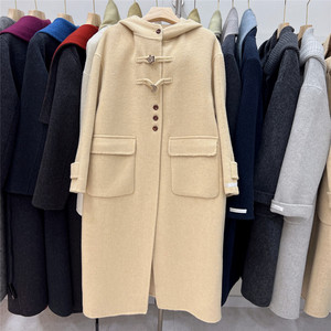 斯卡露高级感连帽双面羊绒大衣2025秋冬新款韩版休闲宽松毛呢大衣