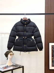 2025ce家立领收腰羽绒服女士中长款咖色金扣韩版时尚厚外套夹克