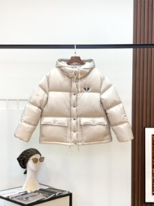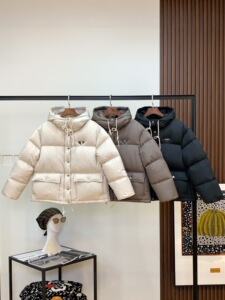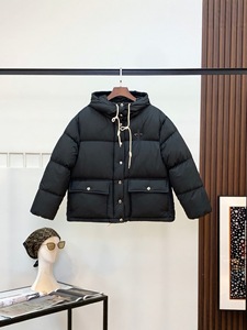 pra家三角标款南油高端货秋冬新款连帽羽绒女宽松厚面包服短外套