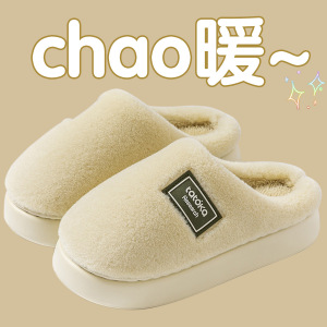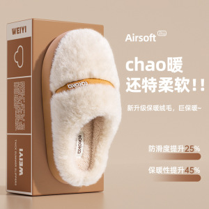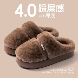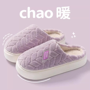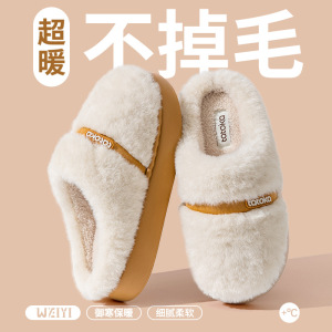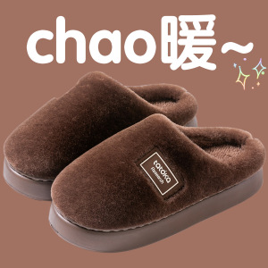 棉拖鞋女款秋冬季男款厚底室内家居防滑加绒加厚保暖毛毛拖鞋女士