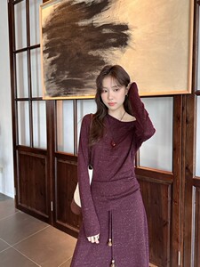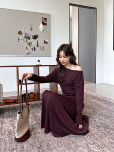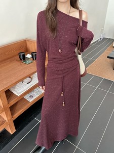 DIGM | 2025秋冬纯欲露肩不规则斜领羊毛亚麻针织衫T恤女A17363