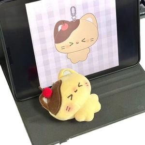 甜品系列毛绒布丁玩偶奶乎乎黄色可爱小猫书包挂件钥匙扣挂链公仔