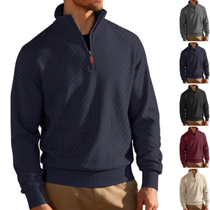 25跨境亚马逊秋冬休闲立领拉链长袖提花肌理美式运动纯色合体卫衣