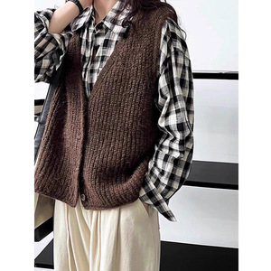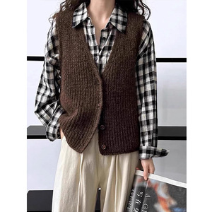 v领纯色无袖开衫针织马甲背心女2025秋季款短款百搭叠穿外搭毛衣