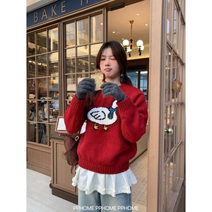 韩系风卡通提花鸭子简约套头毛衣秋冬新款圆领百搭针织套头衫上衣