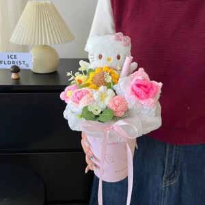 中号粉色针织花奶茶杯花束(含礼袋和灯)