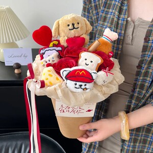 两只小狗玩偶奶茶杯花束(含礼袋和灯)