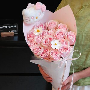 16朵小KT玫瑰奶茶杯花束(含礼袋和灯)