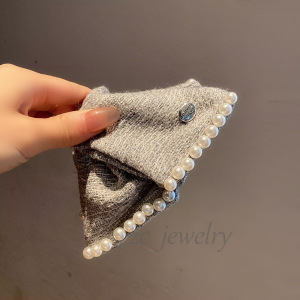 韩国东大门小香ins灰色毛呢珍珠贝壳夹时尚轻奢后脑勺盘发鲨鱼夹