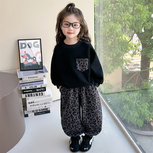 儿童套装2025新款春秋女宝宝豹纹卫衣休闲裤两件套洋气运动童装