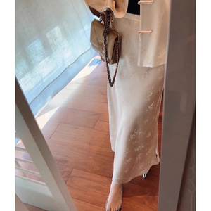 新中式提花醋酸高腰垂感半身裙女2025春秋篙级感国风缎面显瘦裙子