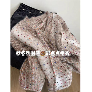 复古v领套头长袖宽松外穿毛衣2025新款慵懒高JI感加厚针织上衣女