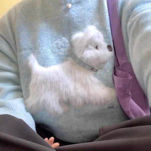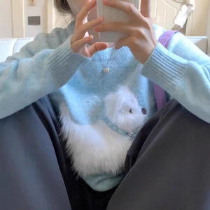 2025秋冬新款韩系休闲百搭打底显瘦花纱圆领毛衣卡通提花针织衫女