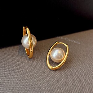灰色珍珠耳环圈圈女2025新款耳钉高级感轻奢独特耳饰气质圆圈耳扣