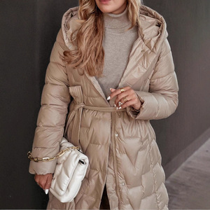 2025欧美女长款过膝新款欧美时尚系带气质收腰修身棉服外套