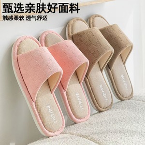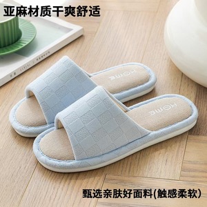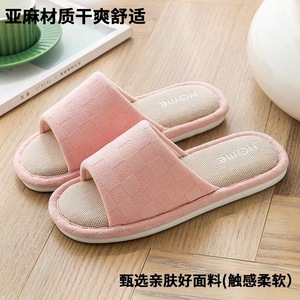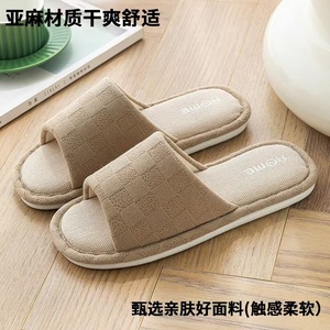 2025新款亚麻拖鞋女款家居室内软底简约舒适透气吸汗四季拖鞋情侣