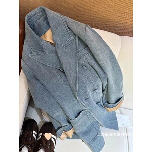 厂家直销早秋新款好看感复古休闲宽松蓝色西装牛仔外套女