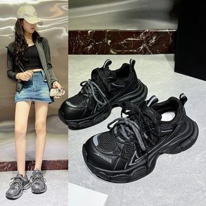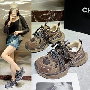 银姿真皮2025秋季新款休闲网面透气时尚复古百搭洋气运动老爹鞋女