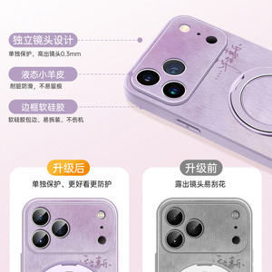 XX157渐变平安连笔字【草紫色】液态皮纹壳★磁吸支架