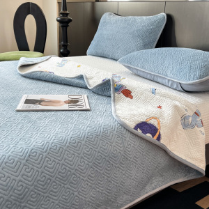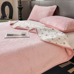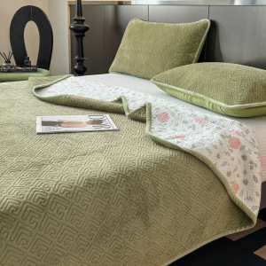 A类双面可用全棉牛奶绒夹棉床盖加厚防滑秋冬榻榻米炕床单三件套2