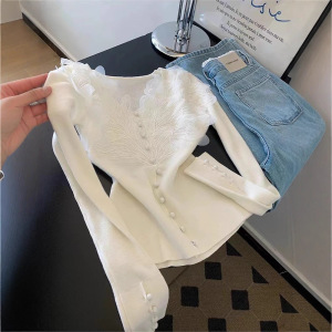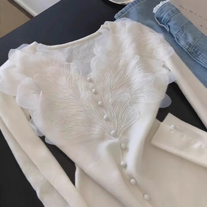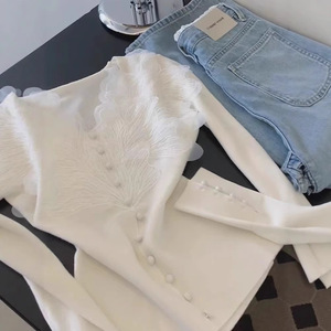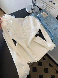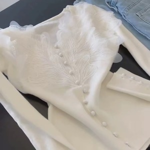 自留推荐~白色立体提花长袖毛衣女2025秋冬韩系温柔风打底针织衫