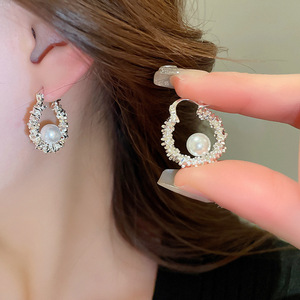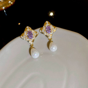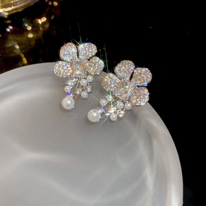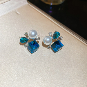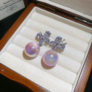 法式复古锆石蝴蝶麦穗珍珠耳环轻奢高级感耳钉气质设计感小众耳饰