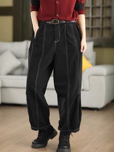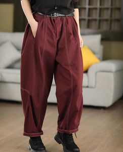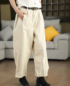 纯色休闲裤复古立体拼接棉质裤女高腰显瘦休闲裤秋季宽松百搭长裤