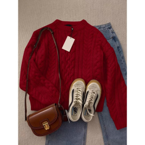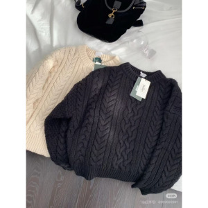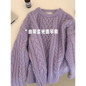 韩系复古黑色麻花毛衣女秋冬加厚宽松慵懒外穿显瘦纯色毛针织上衣