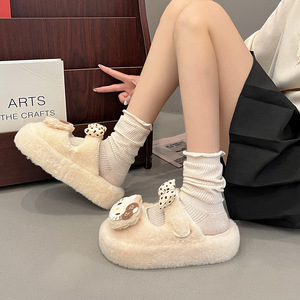软底踩屎感外穿毛毛拖鞋2025冬季时尚加绒保暖卡通玩偶厚底棉拖鞋