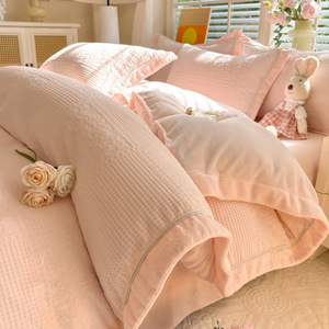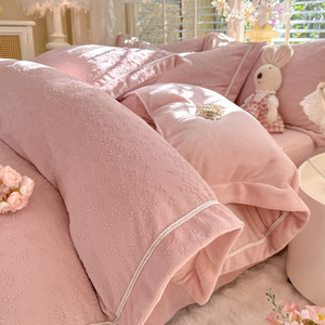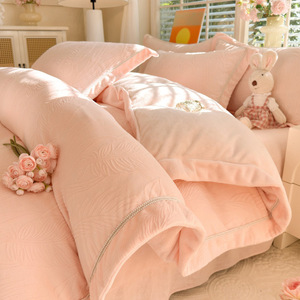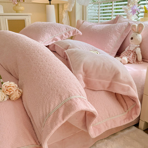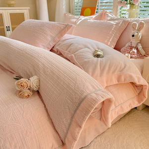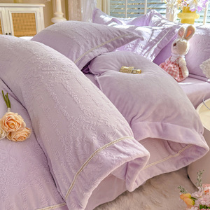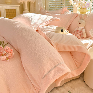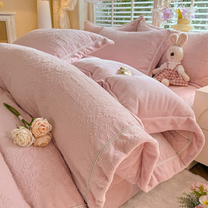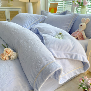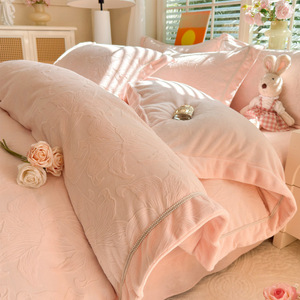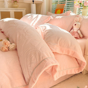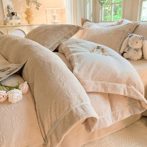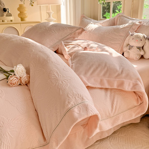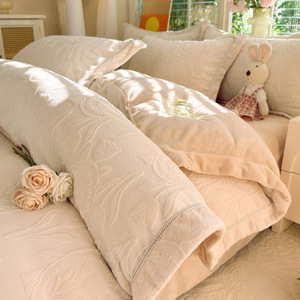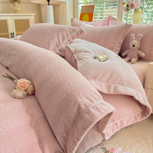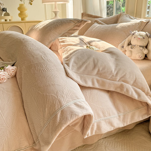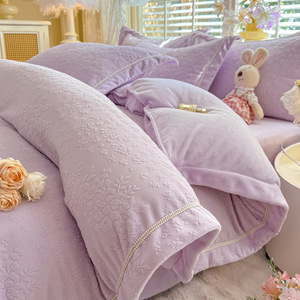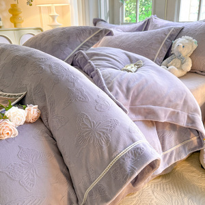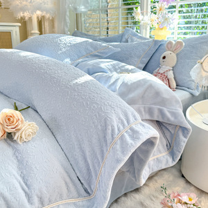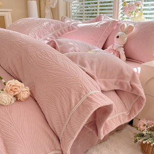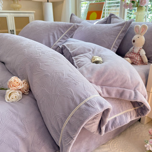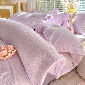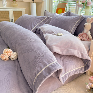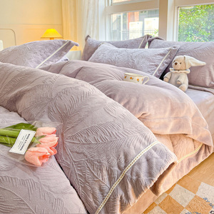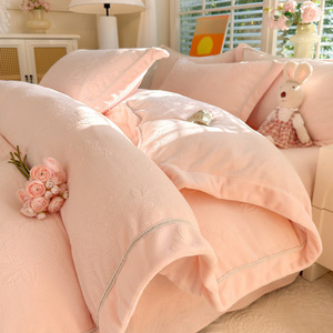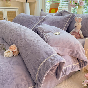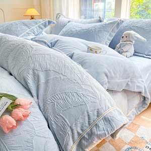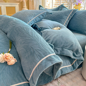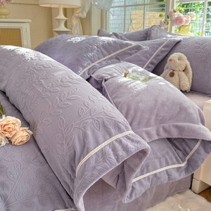 高克重雕花牛奶绒床上四件套秋冬季防静电双面法兰加绒被套床套件