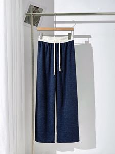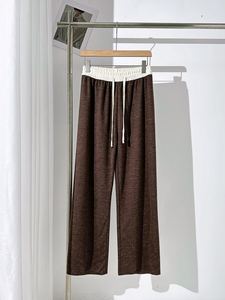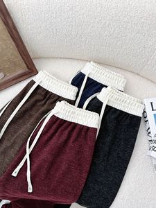 设计感撞色阔腿裤直筒休闲裤女秋冬慵懒风百搭显瘦刺毛绒拖地长裤