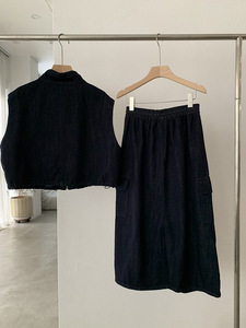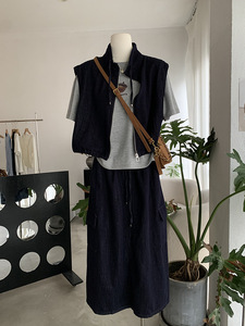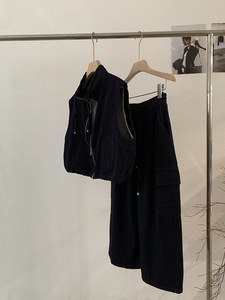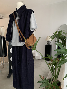 欧玛莱 立领拉链开衫无袖下摆抽绳牛仔马甲背心秋季百搭时尚 4971
