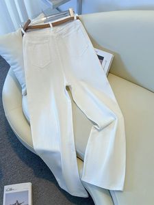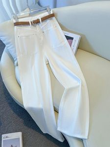 美式潮流爆款白色直筒牛仔裤女秋季新款小个子高腰显瘦窄版阔腿裤