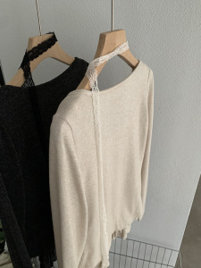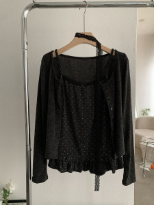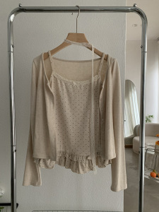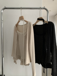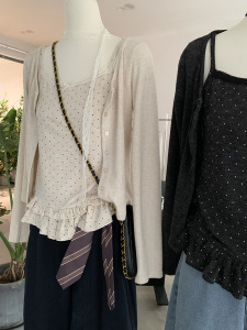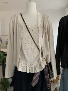欧玛莱 波点木耳边花边吊带背心+蕾丝飘带开衫两件套秋季上衣5000