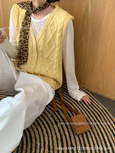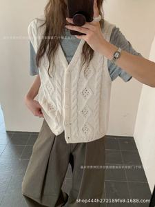 2025秋季新款V领麻花镂空针织开衫马甲无袖叠穿外搭毛衣背心外套
