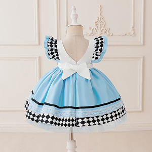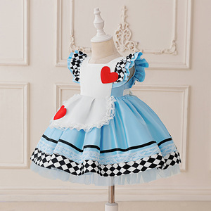 爱丽丝梦游记女童礼服百褶裙cos 蕾丝公主裙礼服children dresses