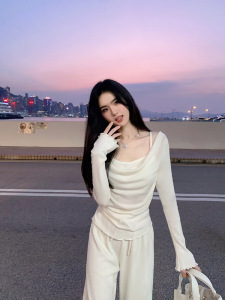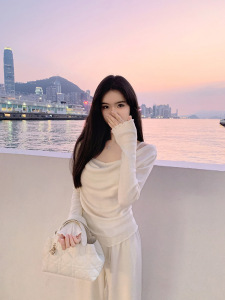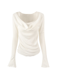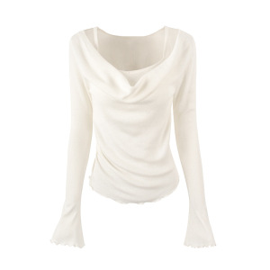 2025年春夏季新款温柔松弛假两件荡领针织长袖打底衫